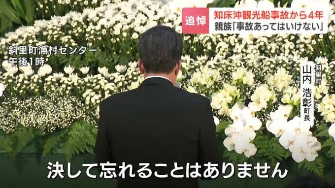 知床半島沖で観光船「KAZUI(カズワン)」が沈没した事故から4年の23日、北海道斜里町で追悼式典が行われました。