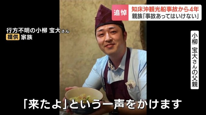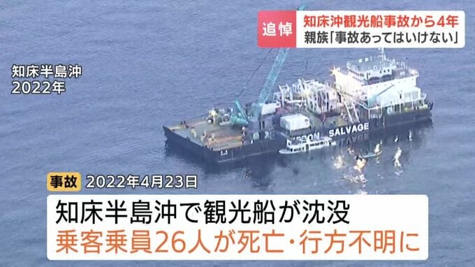 知床半島沖で観光船「KAZUI」が沈没し、乗客乗員26人が死亡・行方不明となった事故から、23日で4年。