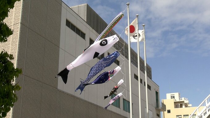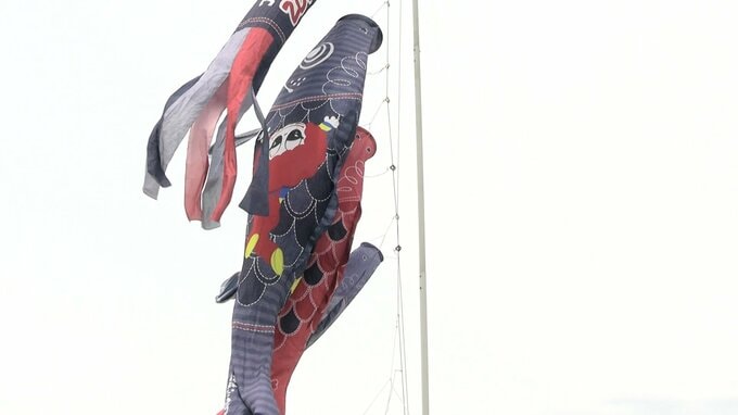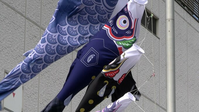 少し変わった柄のこいのぼりが泳いでいます。倉敷市児島味野にある児島市民交流センターにお目見えした「産業こいのぼり」です。