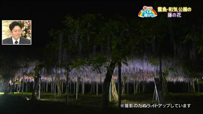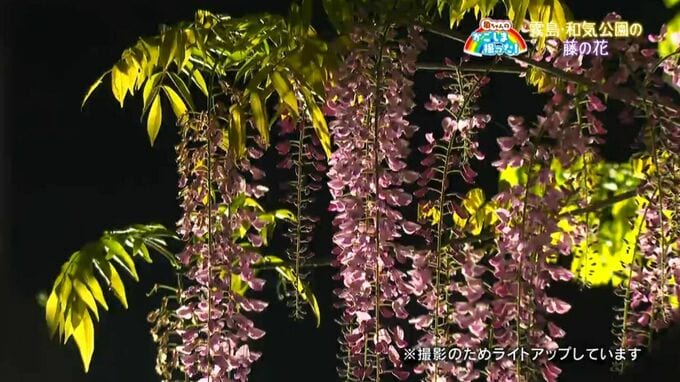 昼間とはまた違った趣がありますよね。暗闇に藤の花が浮かび上がりました。