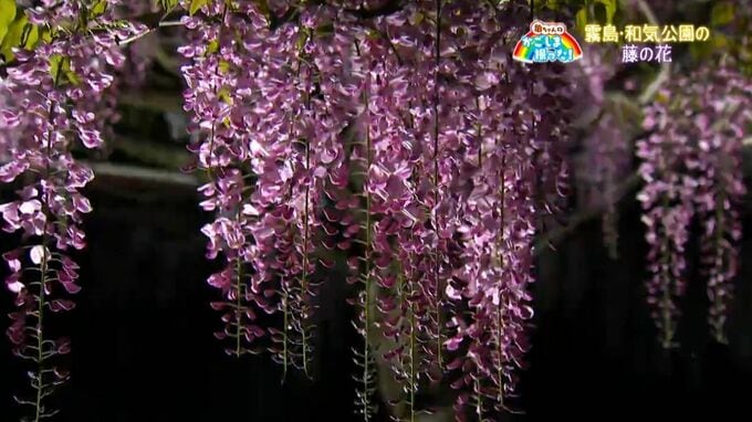 まるで紫色のシャワーを浴びているようにも感じる、和気公園の藤の花。今月末まで楽しめそうです。
