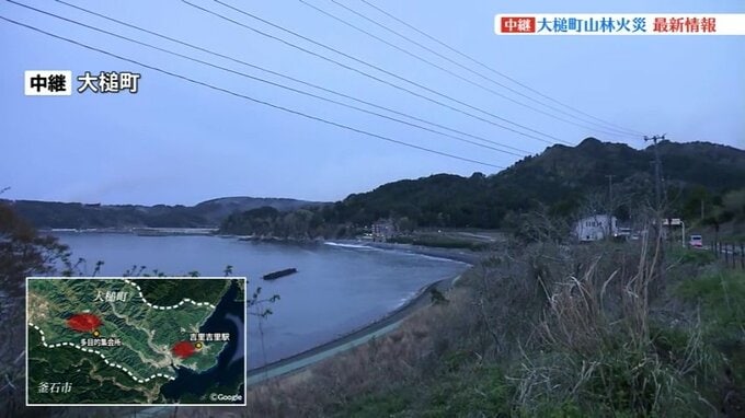 ここでは岩手県大槌町内で発生した2か所の山林火災が見えます。
