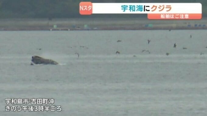 愛媛県宇和島市沖の宇和海で泳ぐクジラを、あいテレビのカメラが捉えました。この周辺の海域では、今月に入り目撃情報が相次いでいて、県などが注意を呼びかけています。宇和島市吉田町沖の宇和海で潮を吹きな…