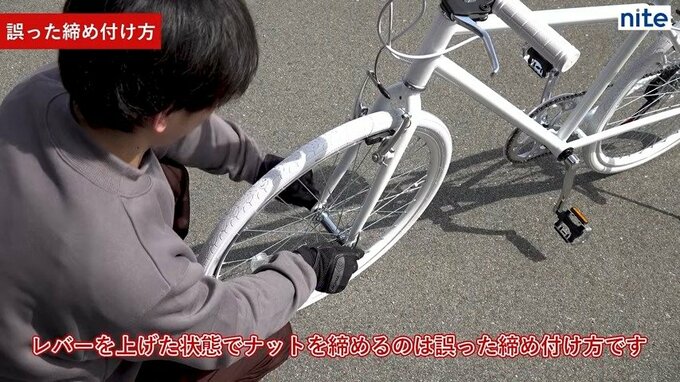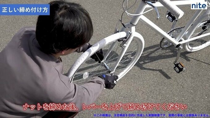 2022年6月(神奈川県、10代・男性、重傷):スポーツ車で下り坂を走行中、前輪が突然外れて転倒。クイックレリーズの固定が緩んだまま走行していたことが原因と推定されています。