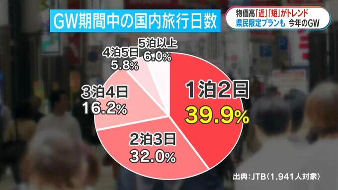 国内旅行を予定している人の旅行日数は「1泊2日」の短期間がおよそ4割と最も多く、去年から6.5ポイント上昇しました。