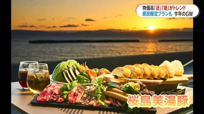 錦江湾を望みながら、垂水産の「桜島美湯豚」を使ったバーベキューが味わえます。