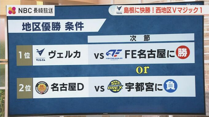 長崎ヴェルカの次節での地区優勝条件は以下の通りです。