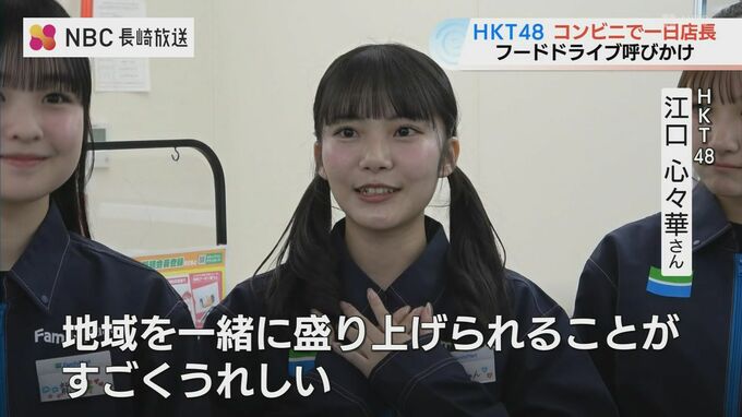 HKT48 江口心々華さん:「ファミリーマートとHKT48がコラボさせていただいて、地域を一緒に盛り上げられることがすごくうれしいです」「麦茶を入れていきたいと思います」