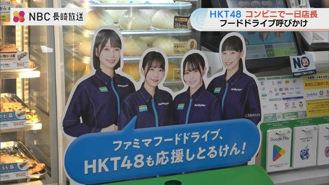 「ファミチキいかがですか?」HKT48長崎トリオが接客!ファミリーマートとコラボで広げるフードロス削減の輪 長崎放送 2026年4月23日(木) 19:48 国内 フードドライブを身近に HKT48コラボで広げる「食品ロス削減」の輪 また、コラボ企画の一つとして、九州内8店舗のファミリーマートでは、食品ロス削減のため設置されているフードドライブのボックスを設置。期間限定のHKT48オリジナル仕様で登場しています。