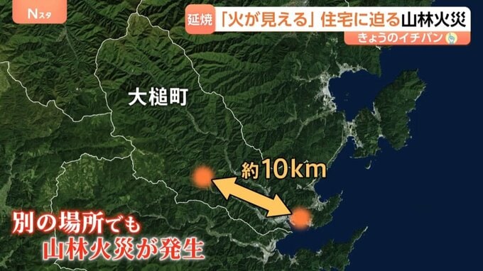さらに、東へ約10キロ離れた別の場所でも山から火が。町内2か所で山林火災が発生したのです。