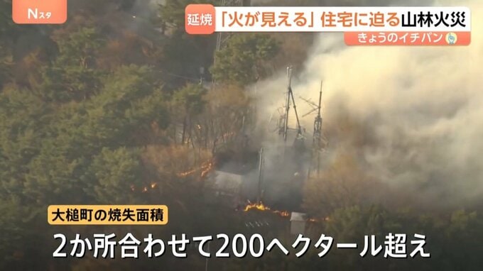 延焼を続ける山林火災。大槌町の焼失面積は、2か所合わせて200ヘクタールを超えています。