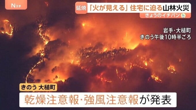 火の手があがったのは22日昼過ぎ。勢いは時間とともに増していきます。大槌町には当時、乾燥注意報に加え、強風注意報も発表されていました。