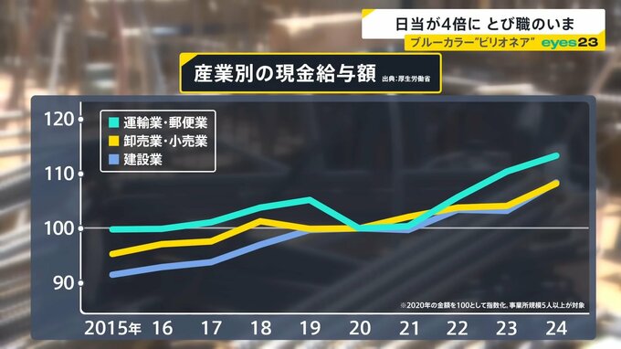 「ブルーカラービリオネア」はアメリカだけの話ではありません。日本でもコロナ渦以降、ブルーカラーの給与額は上昇を続けています。