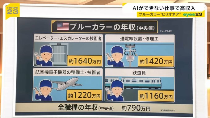【米・ブルーカラーの年収 中央値】(フォーブスより)