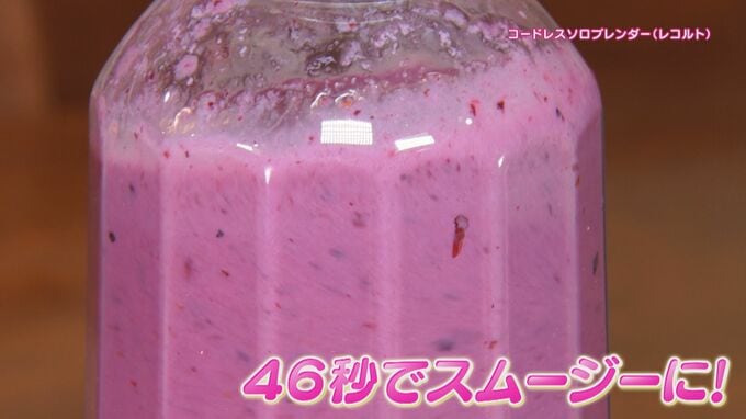 ほかにも、シェイクやスープとアレンジもいろいろ。本体から外せばボトルのように飲むこともでき、さらに、ひっくり返してグラスとして使うことも。作りたてをそのまま楽しめるので、洗い物も増えず、いつでもどこでも気軽に楽しめます。