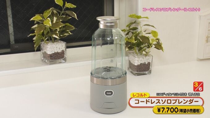 3月に発売されたばかりのレコルト「コードレスソロブレンダー」は、500mlのペットボトルとほぼ同じ大きさで持ち運びに便利。重さも420gと軽量です。