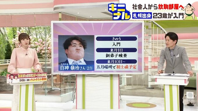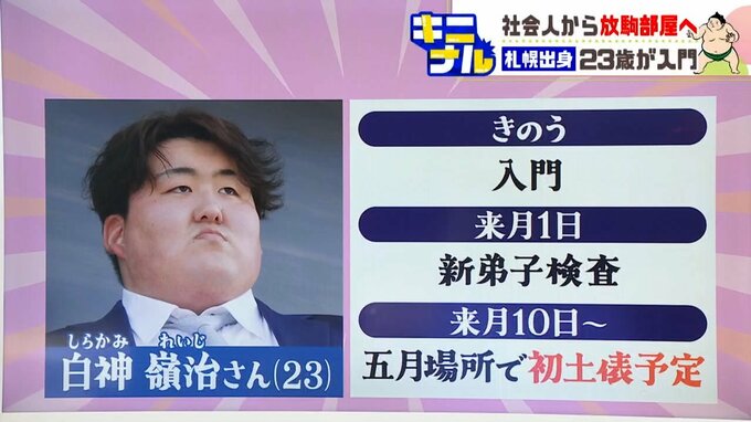 基準となる身長167センチ体重67キロは優にクリアしていますね。その上で5月10日から始まる五月場所で初土俵を踏む予定です。