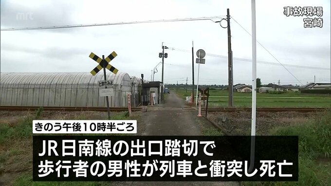23日夜、宮崎市の踏切で、歩行者が列車と衝突し死亡する事故がありました。