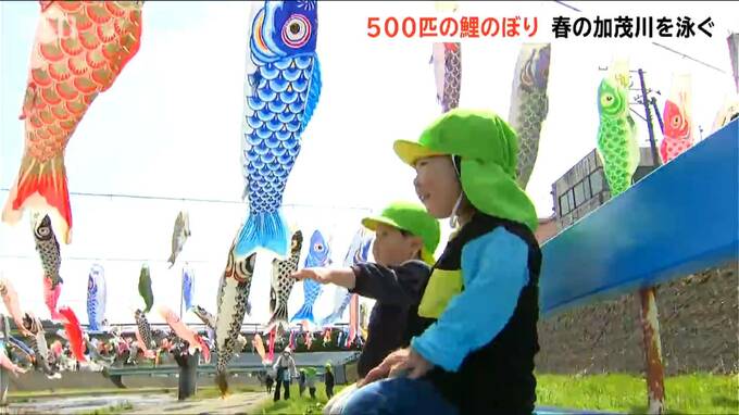 今では家に掲げられることが少なくなった鯉のぼりですが、「子どもたちが健やかに育つように」と加茂市内外から寄付されるなどした約500匹が、春の加茂川を泳ぎます。