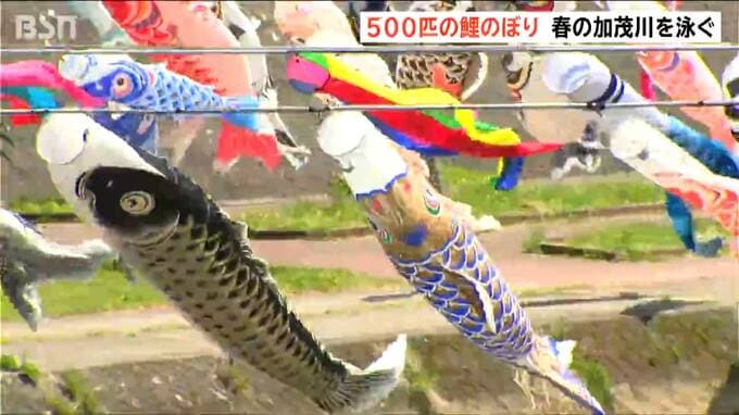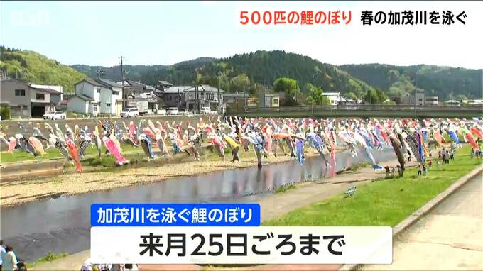 5月5日の「こどもの日」を前に、新潟県加茂市を流れる加茂川では一足早く、約500匹の鯉のぼりが4月24日 一斉に飾られました。