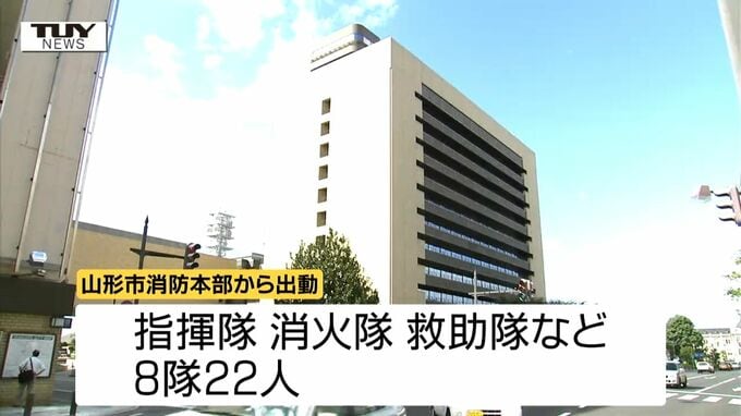 山形市消防本部から出動したのは指揮隊や消火隊、救助隊など8隊22人です。