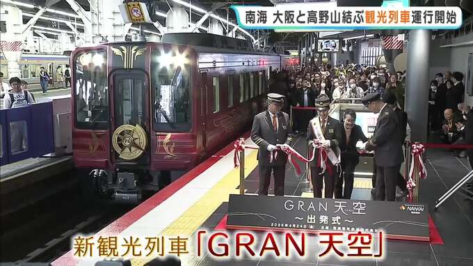 南海電鉄の新たな観光列車の運行が始まり、4月24日朝、1番列車が大阪のなんば駅を出発しました。 運行を開始したのは、南海電鉄の新観光列車「GRAN 天空」です。大阪の難波駅から和歌山の極楽橋駅間を約1時間半…