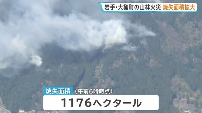 町によりますと、焼失面積はきょう午前6時の時点で、あわせておよそ1176ヘクタールに上っています。
