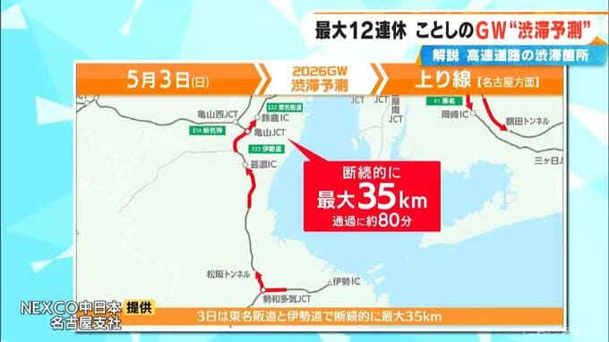 また、5月3日・4日は伊勢方面から名古屋方面が要注意です。