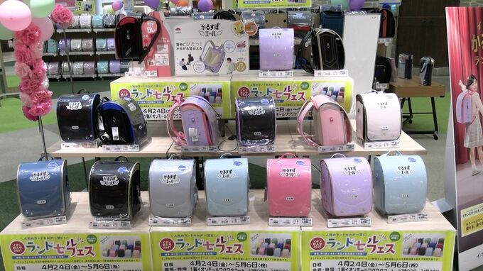 色やデザインの選択肢が広がっています。来年春の入学に向けたランドセルの予約販売会が倉敷市の商業施設で始まりました。