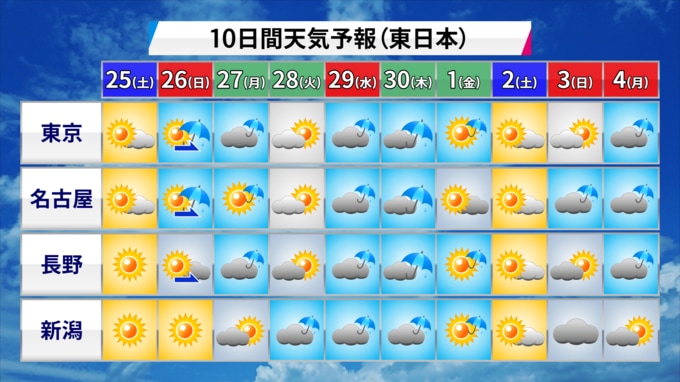 東京は5月1日(金)の雨は一時的の見込みで、2日(土)と3日(日)は行楽日和となりそうです。