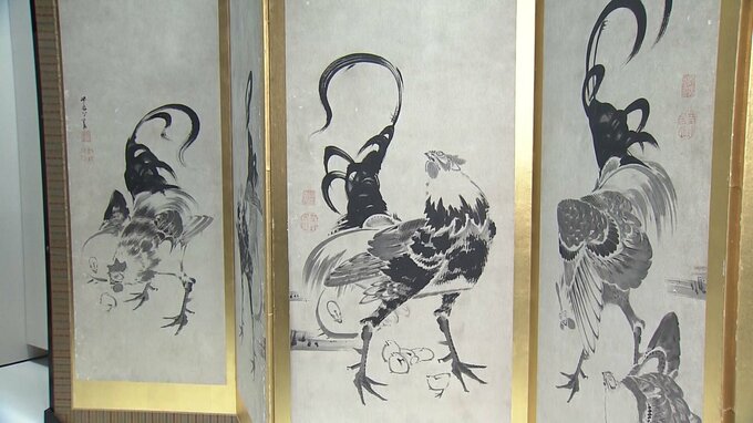 若冲82歳の「鶏図押絵貼屏風」