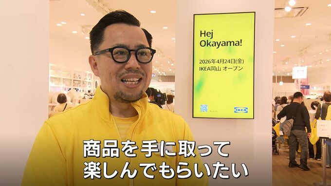 「お店がまだ見えない時からも、既に写真とか撮っていただいて、実際きょうの朝、大阪から来たんですけど、お店の前に人が並んで、今見たらすごくたくさん来ているので、ほんとに感謝しております。岡山のたくさんの方に来てもらって、IKEAを体験して、商品を手に取って、楽しんでもらいたいと思います」