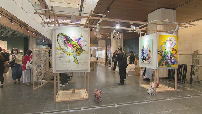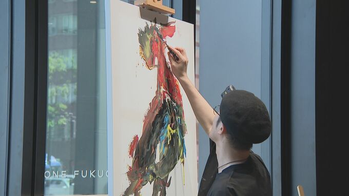 また、春日市出身の画家北村直登さんが描いた犬などの動物の絵が展示・販売されているほか、北村さんが来場者のリクエストに応えながらライブペインティングを行いました。