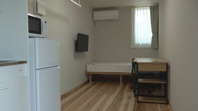 滞在施設は1階建てのコンテナハウスで宿泊棟が20棟と交流スペースやランドリーが供えられた共用施設が1棟設けられ最長で6か月間入居が可能です。