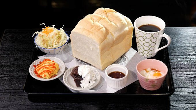 モーニングの内容もびっくり進化!恵時尊のモーニングは、食パン1斤を使った「リッチモーニング」が人気でしたが、新店ではバージョンアップして1.5斤に!「びっくりリッチモーニング」は、ドリンク1杯に、サラダ、温泉卵、ホイップクリーム、小倉あん、オムレツ、メープルシロップ、そして1.5斤の食パン!お値段は、ドリンク代プラス300円。コーヒーなら850円です!