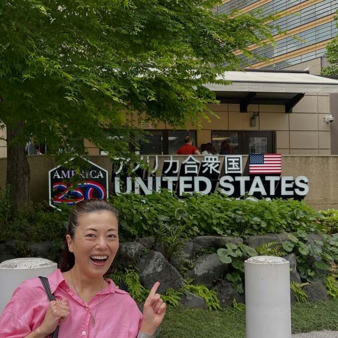 そんな池田さんは「先日はaffidavit作成のためアメリカ大使館へ行きました」と、一連の手続きのための「affidavit=宣誓供述書」を作ったとのこと。そして大使館の表のサインを撮影しています。