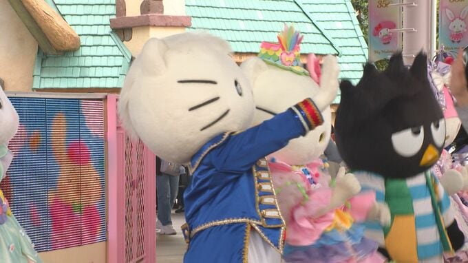 ハーモニーランドは4月26日に35周年の節目を迎え、多彩なイベントが目白押しです。中でも人気を集めているのはキャラクターとのハイタッチグリーティング。35周年の特別な衣装を身にまとったハローキティなど11キャラクターとハイタッチできます。