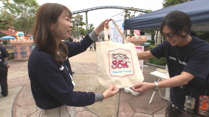 園内をめぐりデジタルバッジを5つ集めると、35周年のバッグを受け取ることができます。