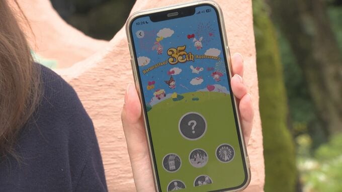 (八尋真梨絵記者)「35周年のイベントはアプリでも楽しむことができます。園内をめぐってキーワードを入力するとデジタルバッジを獲得できます」