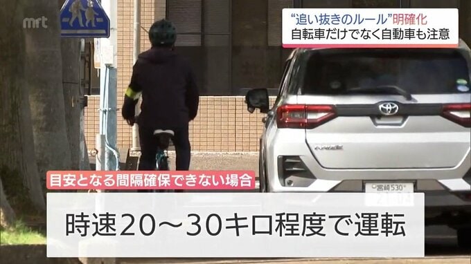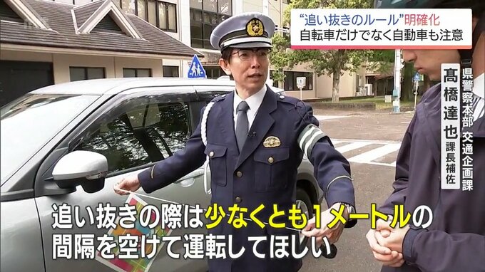 「自動車が自転車を追い抜く際の十分な間隔ですが、これに関して、追い抜きの際は、少なくとも1メートルの間隔を空けて運転するということになります」