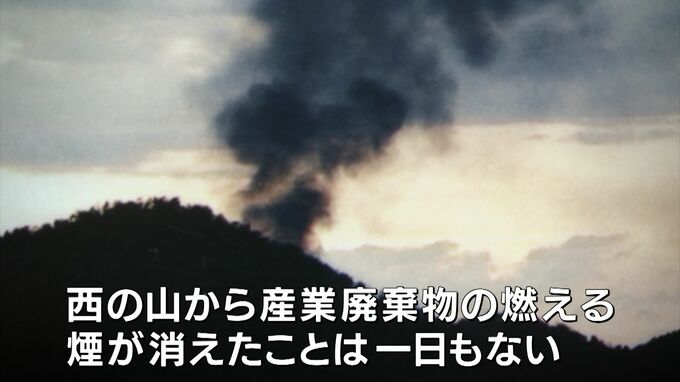「みなさんが着いた港に産業廃棄物が大量に持ち込まれてですね。そして今通って来た道を通ってここに持ち込まれて燃やした。毎日毎日カラスの鳴かない日があっても、西の山から産業廃棄物の燃える煙が消えたことは一日もない」