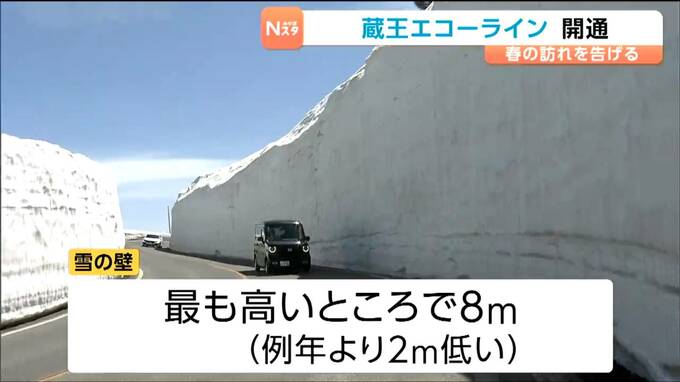 蔵王町などによりますと、2026年は積雪が少なく、23日時点の雪の壁の高さは最も高いところでも8メートルと、例年より2メートルほど低いということです。