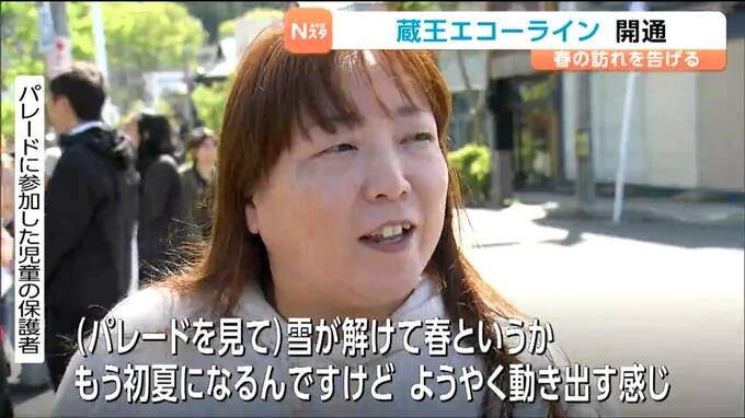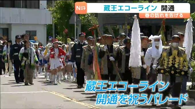 開通にあわせ、遠刈田温泉では恒例のパレードが行われました。