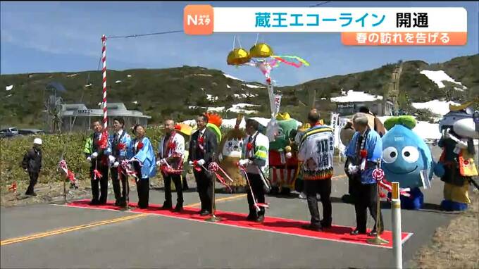 蔵王に春の訪れです。宮城県蔵王町と山形県上山市を結ぶ「蔵王エコーライン」が冬季閉鎖期間を終え4月24日に開通し、観光客がさっそく雪の回廊を楽しみました。蔵王町の刈田峠で開かれた開通式には関係者約100人が出席し、神事が執り行われました。そして午前11時過ぎ、蔵王エコーラインの開通が宣言されました。