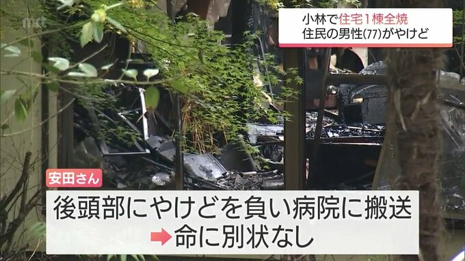 出火当時、家にいた安田さんが後頭部にやけどを負い、病院に運ばれましたが、命に別状はないということです。