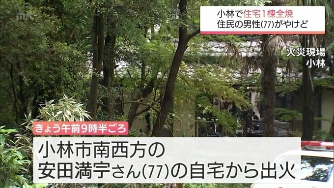 24日午前9時半ごろ、小林市南西方の安田満𡧃さん(77歳)の自宅から火が出て、木造平屋建ての住宅を全焼しました