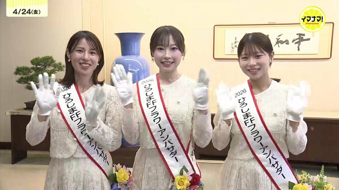 フラワーアンバサダーの3人は25日行われるサンフレッチェ広島の試合前にもフラワーフェスティバルをPRします。