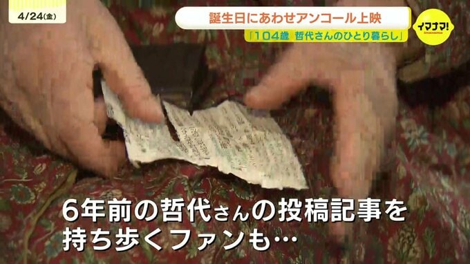 6年前の哲代さんの投稿記事を、財布の中に入れて持ち歩くファンを見つけました。