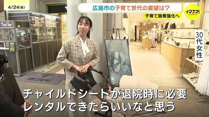 「チャイルドシートが退院する時に必要なので、レンタルができたら良い。実家のある自治体ではチャイルドシート借りられるけれど、広島市では借りられなくて」