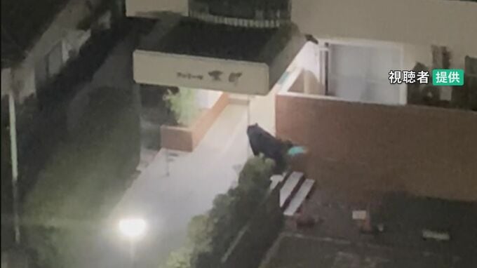 カメラマンリポート「仙台市の上空です。マンションの敷地内にクマが居座っているということです」